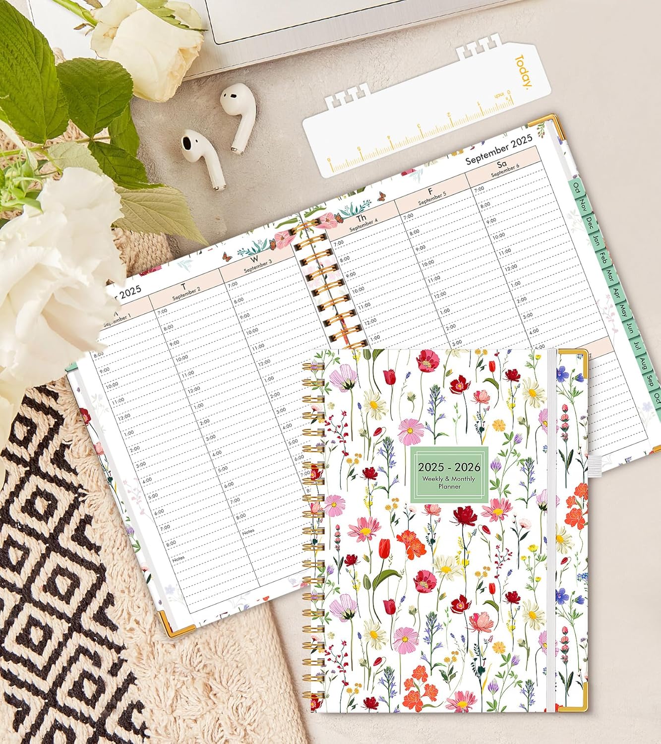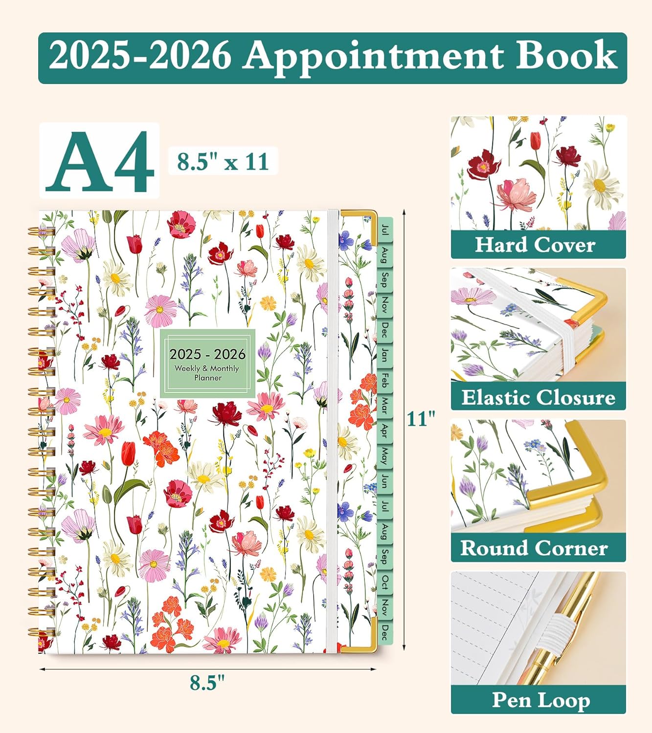 2025-2026 Appointment Book, Hardcover Planner 15 Months Weekly and Monthly (October 2025 – December 2026), 8.5″x11″ Daily Hourly Planner 60-Minute time Slots, Spiral Calendar Schedule Book for Work School Teacher Student, Wildflower Garden