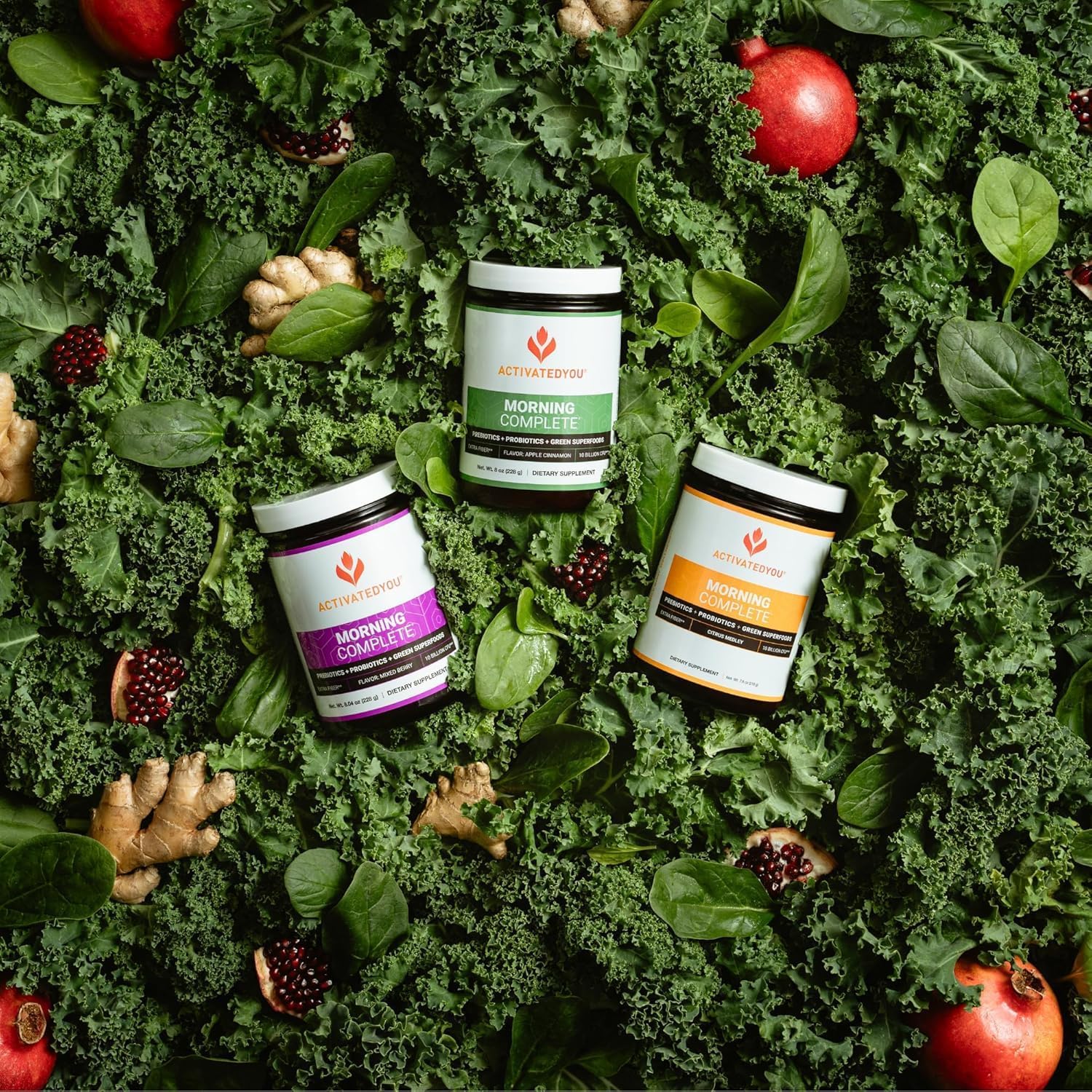 ACTIVATEDYOU Morning Complete Daily Wellness Greens Superfood Drink Mix for Gut Health w/Prebiotics, Probiotics, Antioxidants, Green Superfoods, 10 Billion CFUs (3 Pack, Apple Cinnamon)