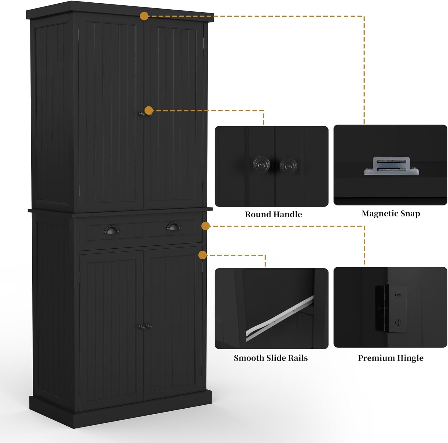 ARTPOWER 72″ Tall Kitchen Pantry Storage Cabinet with Drawer and Adjustable Shelves, Pantry Cabinet for Kitchen, Bathroom or Hallway, Black