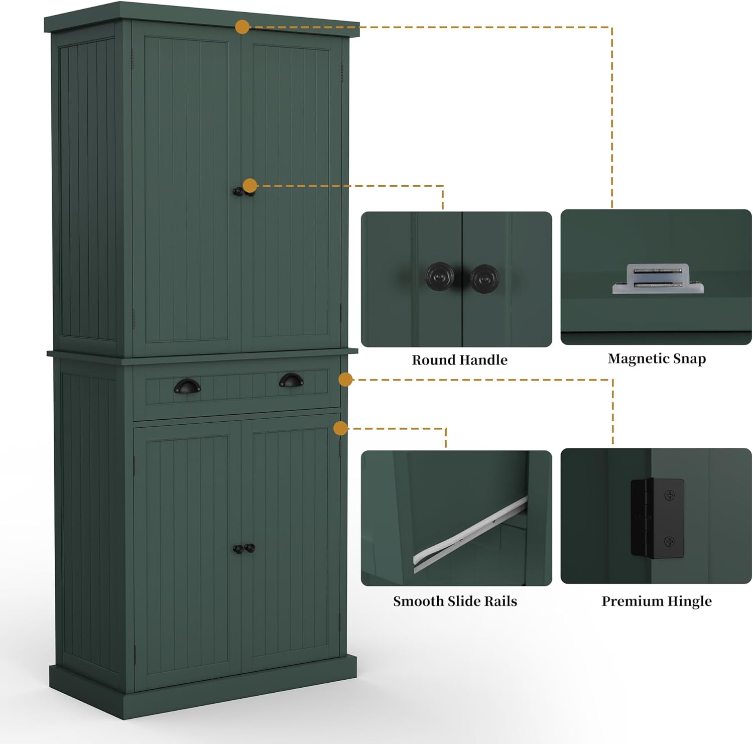 ARTPOWER 72″ Tall Kitchen Pantry Storage Cabinet with Drawer and Adjustable Shelves, Pantry Cabinet for Kitchen, Bathroom or Hallway, Green