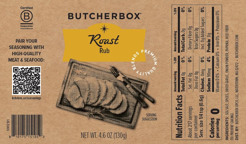 ButcherBox Roast Rub, Premium Quality Blends, 4.6 oz — Savory Garlic, Rosemary & Thyme with Smoked Paprika — Prime Rib, Beef Roast, Lamb, Pork, Turkey & Chicken Seasoning