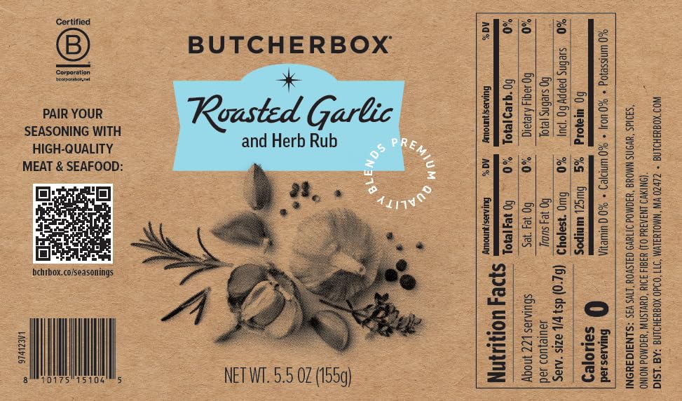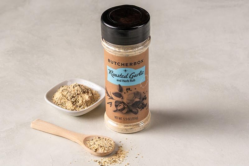 ButcherBox Roasted Garlic & Herb Rub, Premium Q!uality Blends, 5.5 oz (155 g) — Savory Garlic, Rosemary & Thyme with Mustard — All-Purpose Seasoning for Chicken, Pork, Steak, Burgers & Vegetables