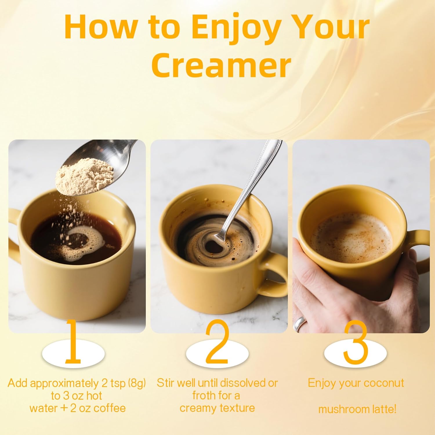The Collagen Creamer with Coconut and 10 Mushroom Supplement is a surprisingly enjoyable way to give your morning coffee a health boost. It blends the creamy taste of coconut with a hint of Ceylon cinnamon, adding a mild, comforting flavor that pairs nicely with both hot and iced drinks. The mix dissolves fairly well in coffee, leaving a smooth consistency without too much clumping if stirred properly.The addition of bovine collagen is a nice touch for anyone looking to support healthy hair, skin, and nails, while the mushroom blend gives an extra layer of nourishment for energy and overall wellness and so far they have been effective. It feels like a multitasking upgrade to a regular creamer, something that makes your drink taste good while offering long term benefits for your body.That said, the flavor might not be everyone’s favorite. The earthy undertone from the mushrooms is subtle but noticeable, especially if you prefer a more neutral or sweet coffee taste. It’s also not as creamy as traditional dairy or oat-based creamers, so those expecting a rich texture might find it a little light. Value for money wise, it is a little pricey in my opinion.
