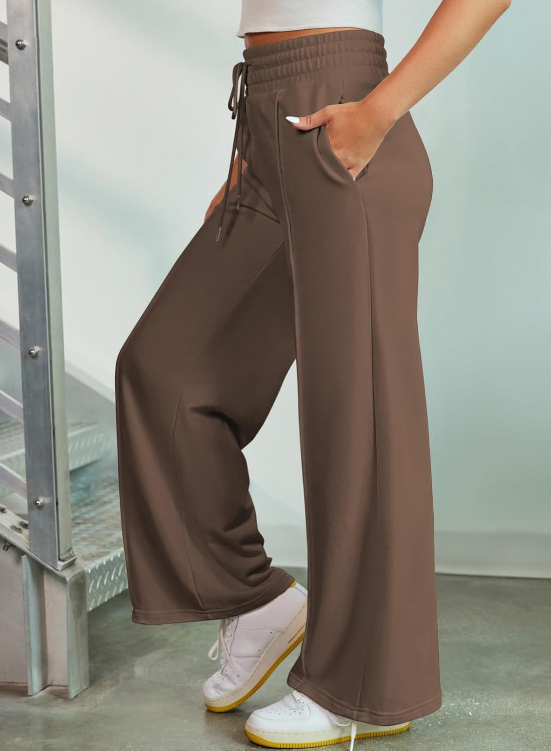 EVALESS Womens High Waisted Baggy Drawstring Sweatpants Casual Wide Leg Pants Long Trouser Slacks with Pockets