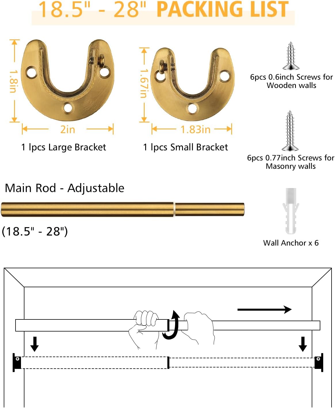 FIRJOY Closet Rods for Hanging Clothes – Heavy Duty, Length Adjustable (#2 Gold, 18.5″ – 28″)