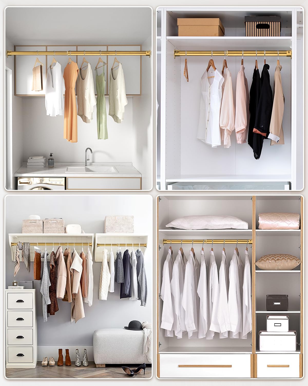 Adjustable Length for Versatile Use: Choose the length of our closet rods to fit any wardrobe layout, maximizing your space utilization and organizing efficiency.