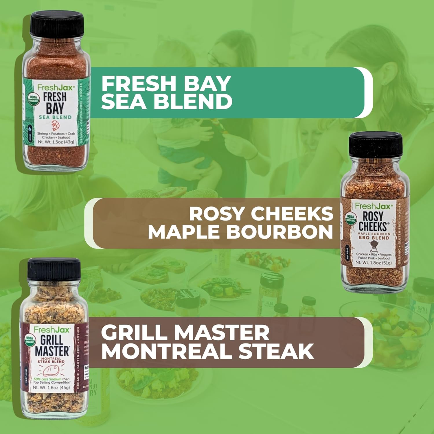 FreshJax Organic Surf & Turf Seasoning Gift Set – 3 Sampler Bottles: Fresh Bay, Maple Bourbon & Grill Master – Non-GMO, Gluten-Free, Keto – Gourmet Spice Gift Box for Meat, Seafood & Grilling