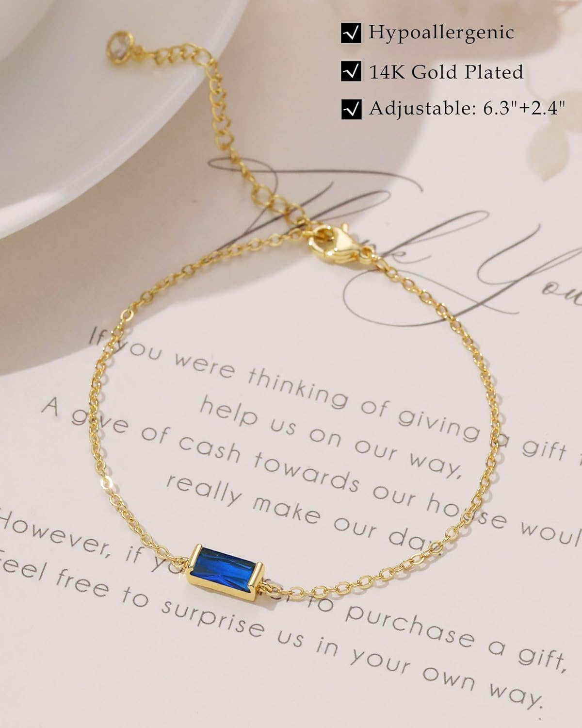 FUNEIA Birthstone Gold Bracelets for Women Non Tarnish Trendy Dainty 14K Gold Plated Bracelet Stack Stackable Blue Green May Emerald Friendship Bracelets Jewelry Gifts for Mom Best Friend