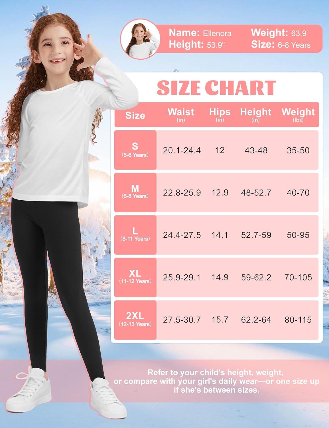 Warm ,good for cold winters,true to size for a 10 yrs old child,she loves the warmth of these leggings.