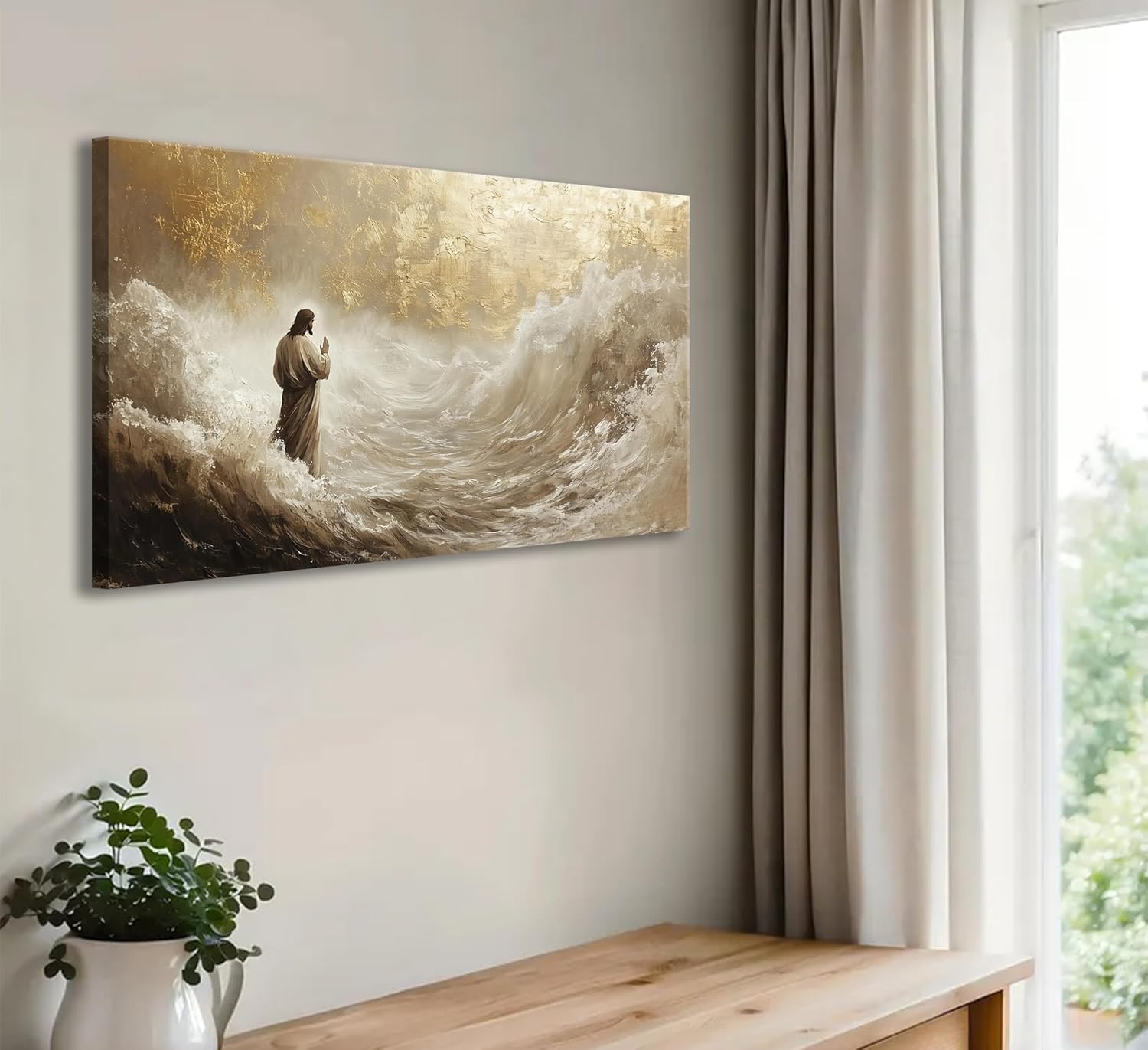 This beautifully crafted piece features the iconic moment from the Bible where Jesus walks on water, symbolizing hope, strength, and divine presence.Depicts the powerful story of Jesus walking on water, symbolizing faith and divine connection, perfect for deepening spiritual reflection in Christian homes or churches conveying the firmness of faith, as well as awe and gratitude for the divine power.