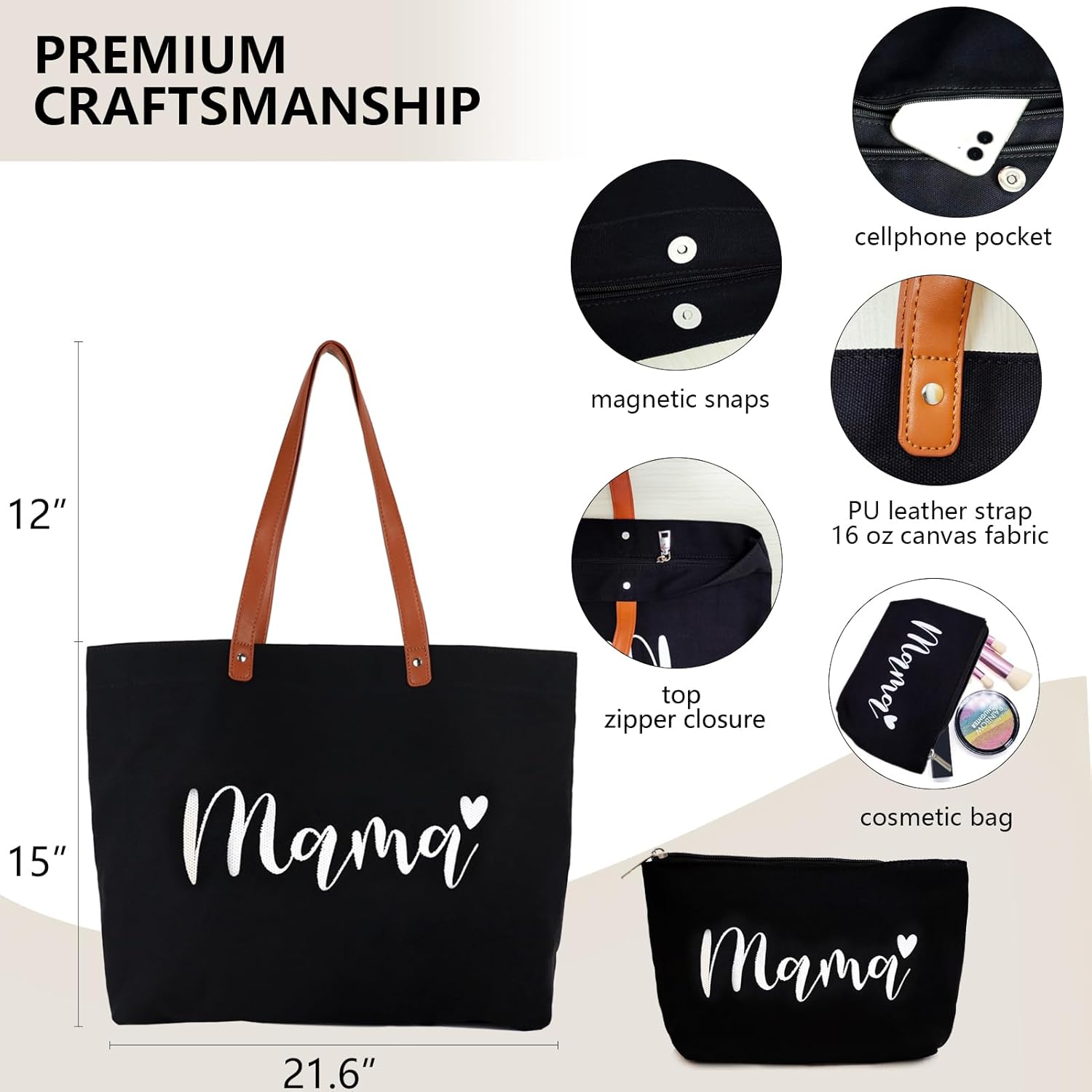 Lamyba New Mom Gifts, Mothers Day Gifts From Daughter Son Kids, Mama Bag Tote for Hospital or Baby Essentials, Mom to Be Gift
