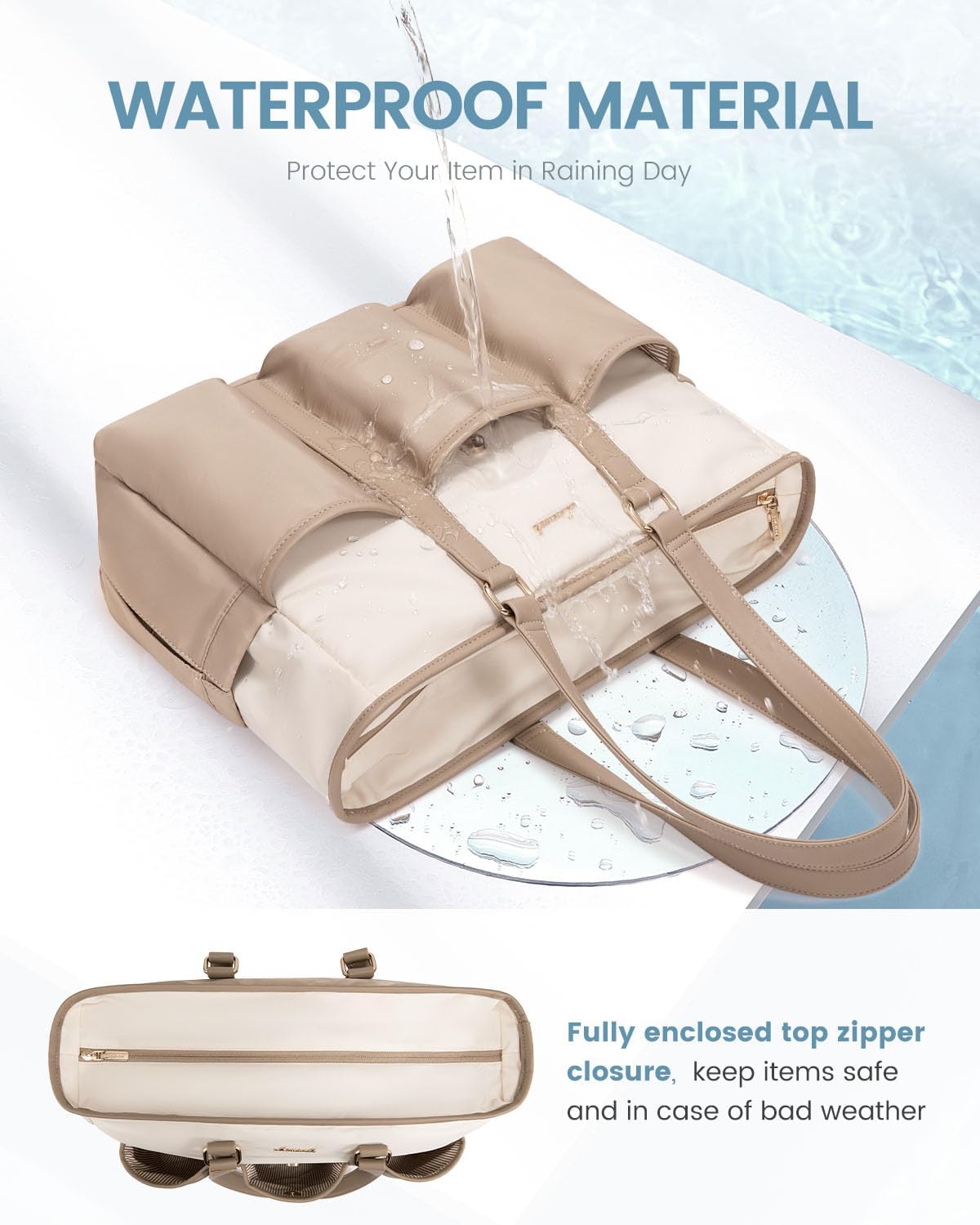 Enhanced Security: The fully enclosed zipper top of the laptop tote bag for women offers maximum security, preventing items from falling out and keeping them dry in the rain. Perfect for both professional and casual settings.