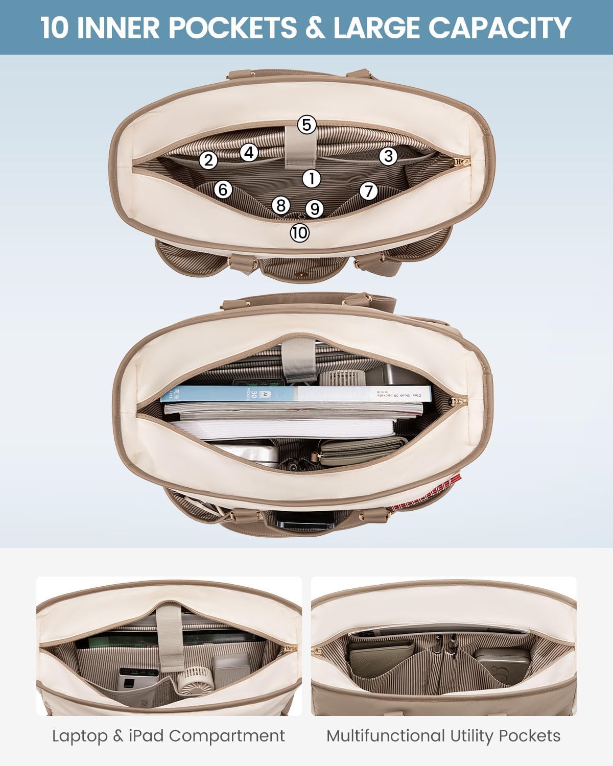 Multi-pocket Design for Versatile Use: Our work tote bag for women boasts 10 interior pockets, making it perfect for organizing your work essentials. Whether you’re a nurse, teacher, or professional, this tote bag ensures everything has its place.