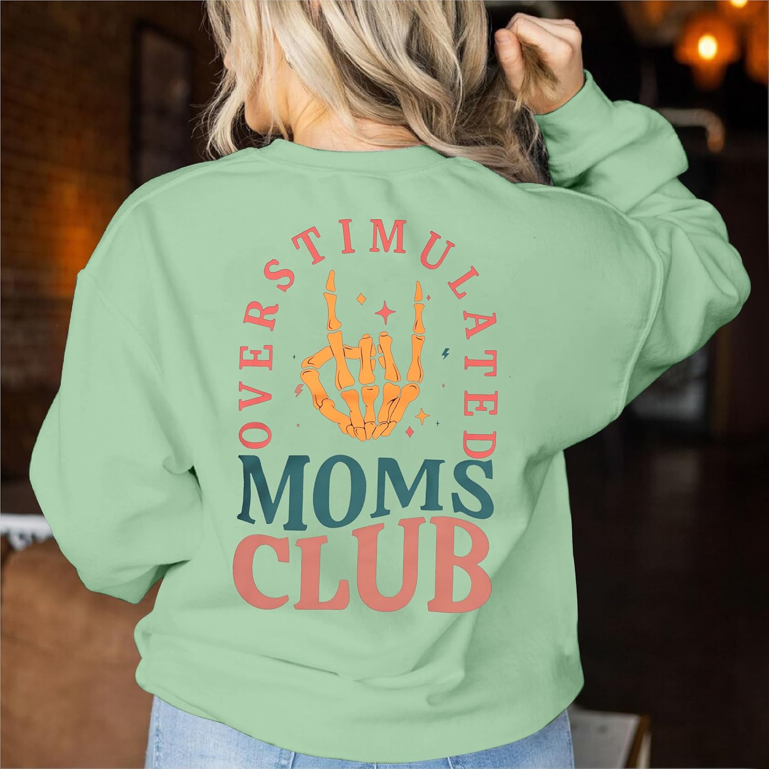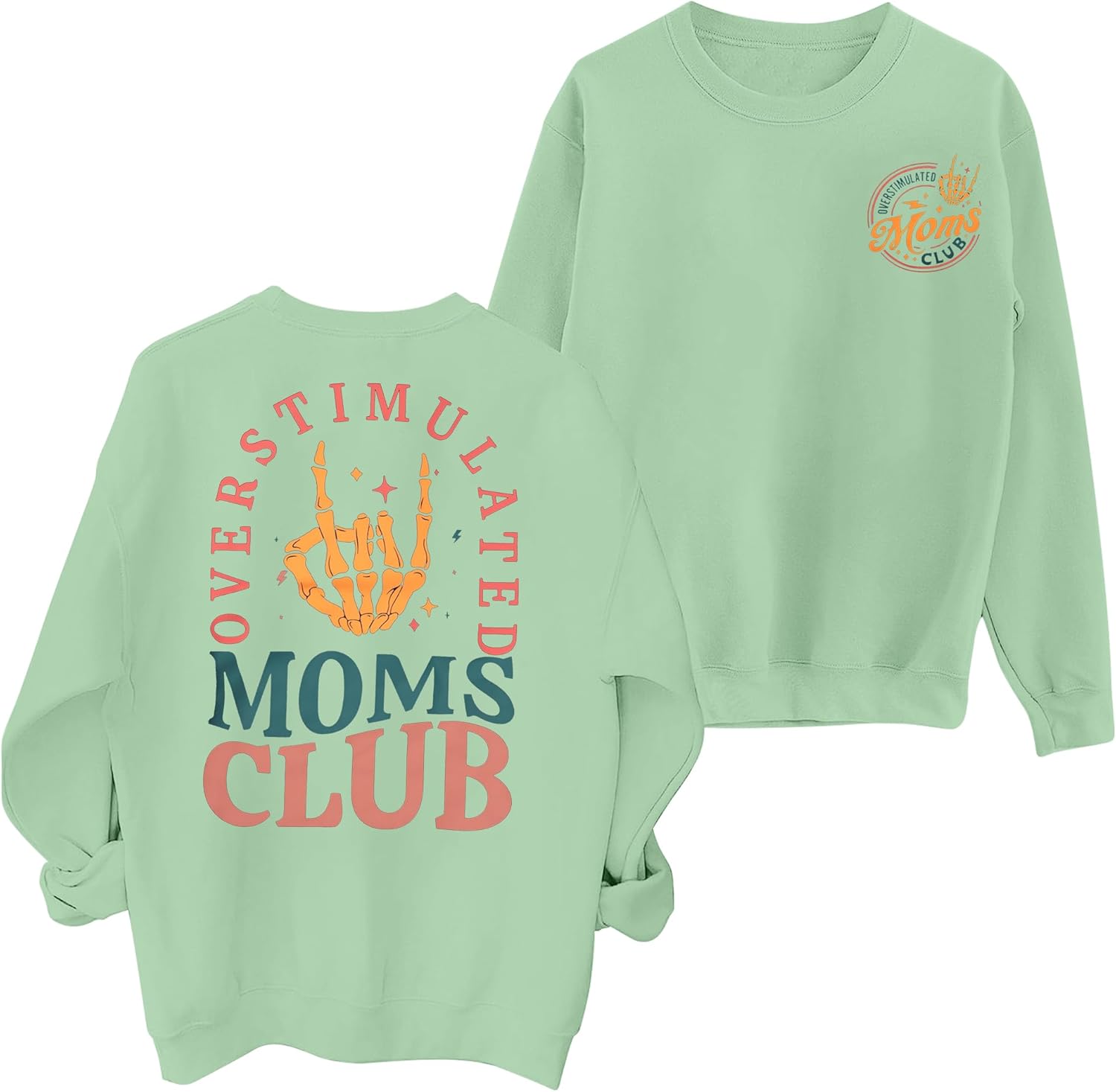 OVERSTIMULATED MOMS CLUB letter print, and skull mom graphic tee, mom club sweater loose fit long sleeve clothes, cute and funny