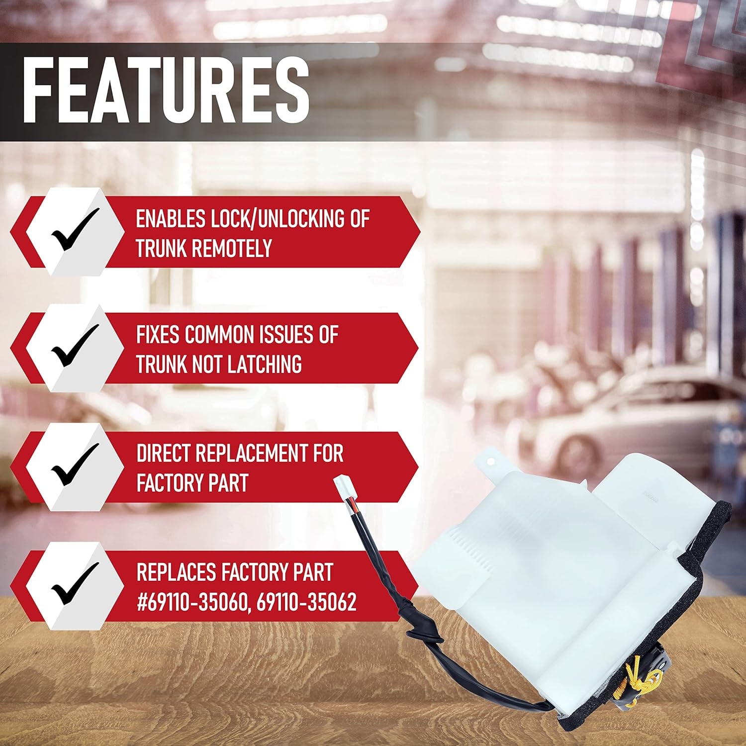 Replaces Part# 69110-35060, 69110-35062, 69110-35090, 6911035060, 6911035062, 6911035090, TO1911104, AC89740, DLA653. This replacement trunk lid latch actuator from AA Ignition returns the proper operation of your 4Runner power trunk lock equipped with a redesigned high quality motor that will last for years of operation.