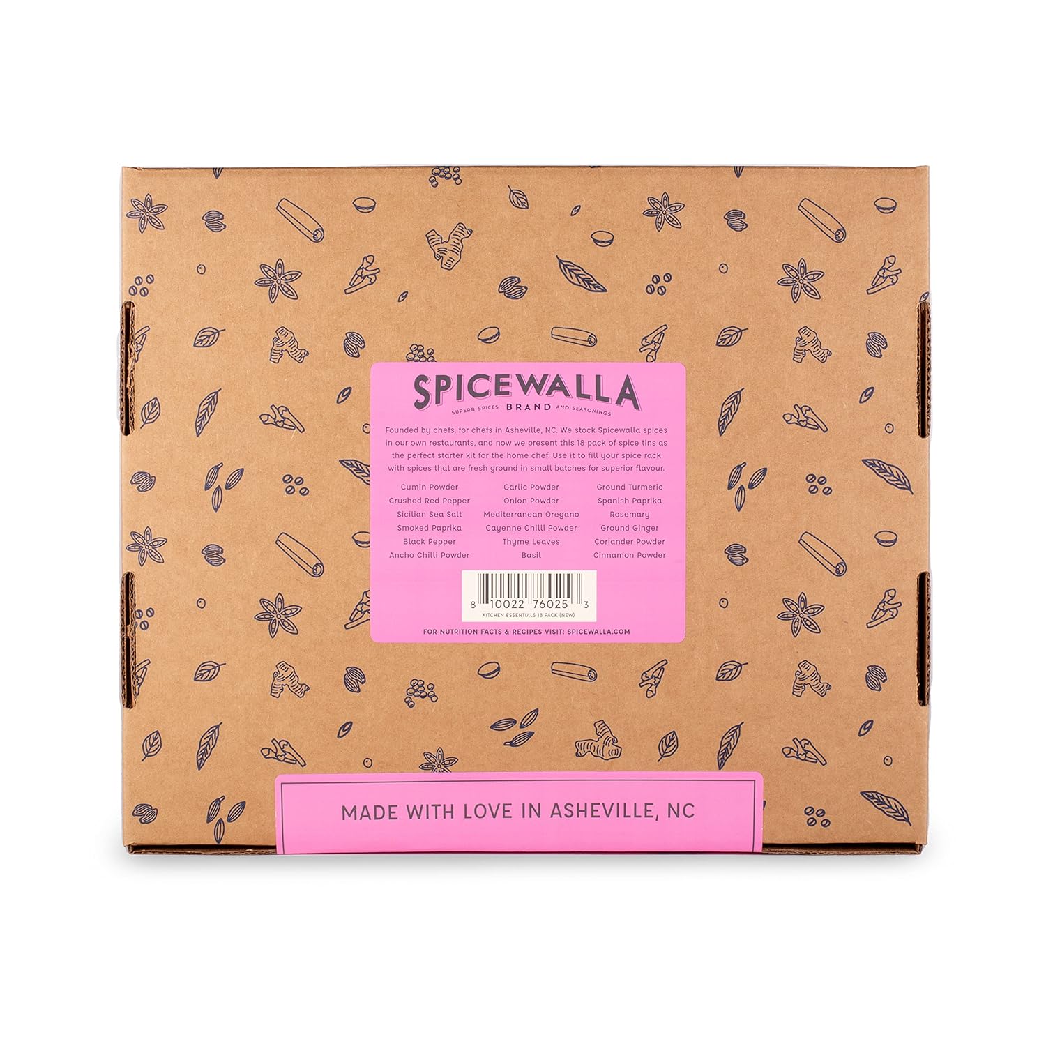 Spicewalla Essential Spices and Seasonings Set 18 Pack Variety | Garlic, Onion, Paprika, Crushed Red Pepper, Oregano, & more| Kitchen Cooking Set for Apartment and Home | House Warming Gift Set