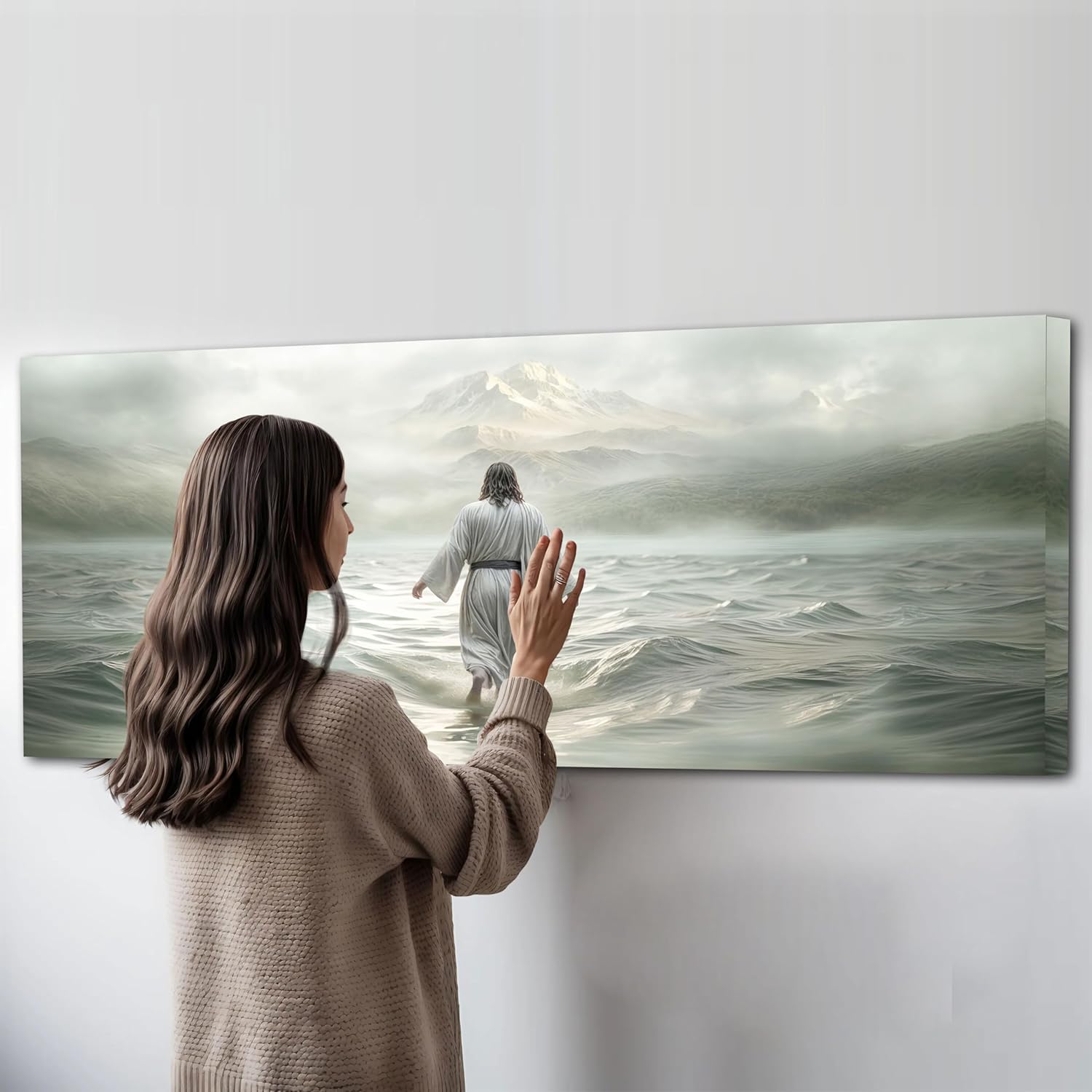 TAILORED CANVASES Walking on Water Faith Wall Art, Jesus Walking on Water Canvas, Modern Christian Decor, Divine Light Spiritual Picture, Religious Artwork for Living Room, Bedroom, or Church 10×20