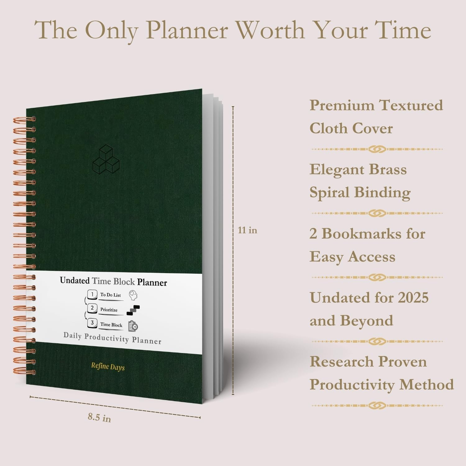 The time-blocking layout really helps me stay on track throughout the day. I went with the A4 size, which is a bit larger than I expected, but it still fits in my backpack, so it’s not a big deal.The planner includes sections for to-do lists, hourly schedules, and monthly agendas, making it easy to manage my time and tasks. The spiral-bound notebook has 200 pages, giving me plenty of space to plan ahead. The undated format is a nice touch, allowing me to start using it at any time without wasting pages.Overall, I’m very happy with this planner. It’s helped me improve my time management and productivity. If you’re looking for a practical and well-designed planner, this one is worth considering.