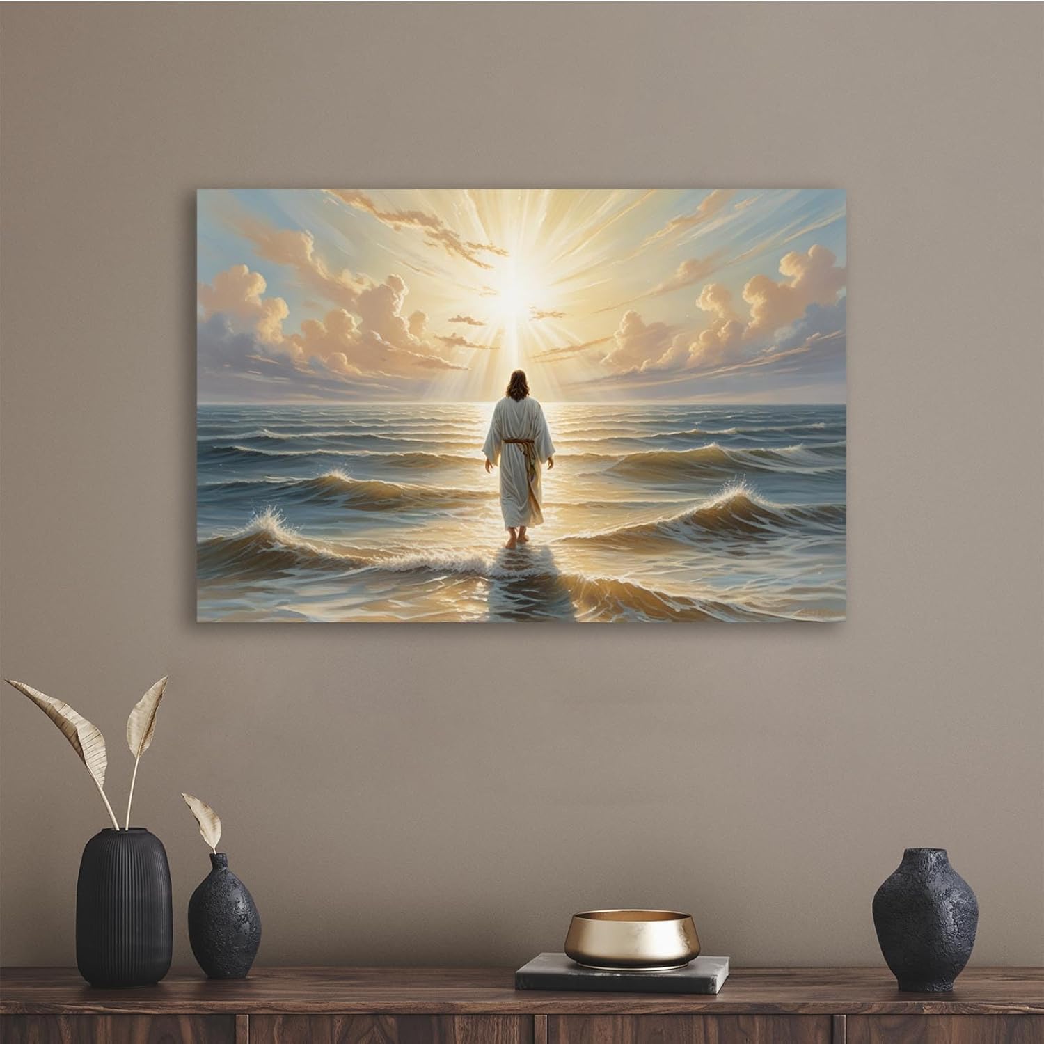 walking on water art christian faith art inspirational wall decor christian wall art divine mercy pictures jesus christ christian decor jesus wall art jesus paintings catholic art jesus posters
